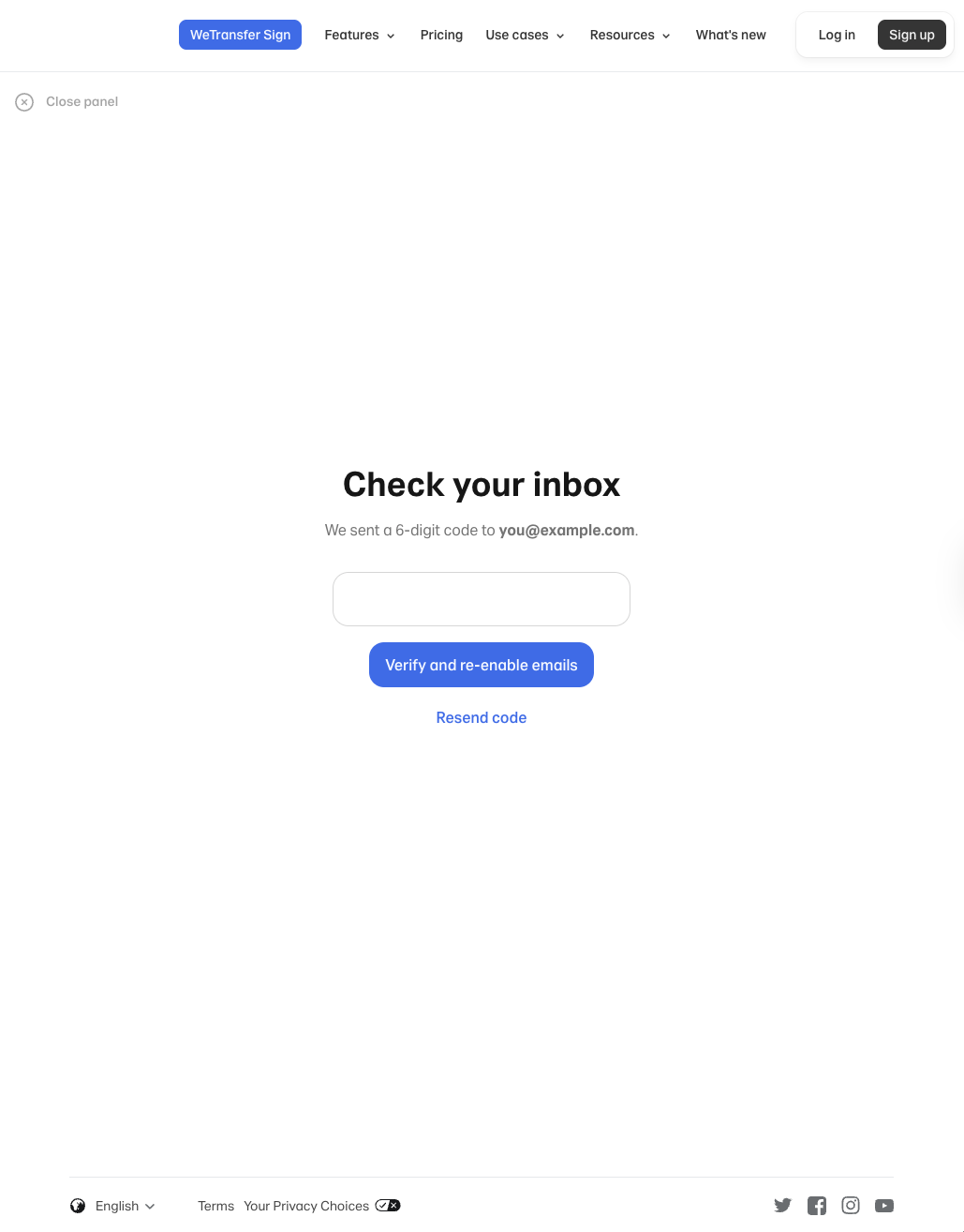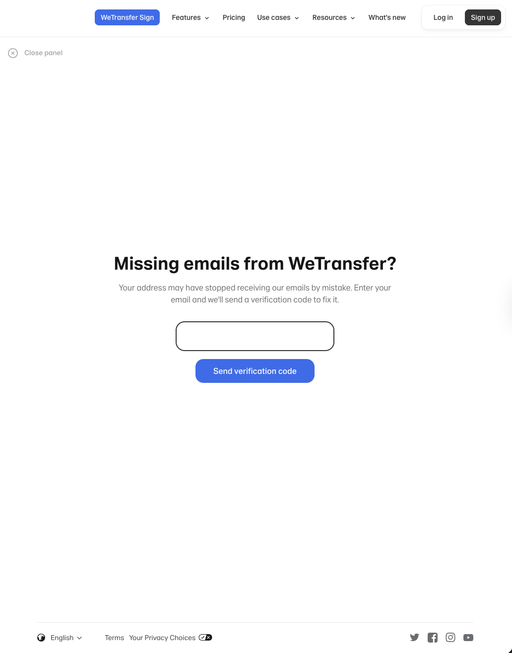 - Enter the email address that's stopped receiving WeTransfer emails.