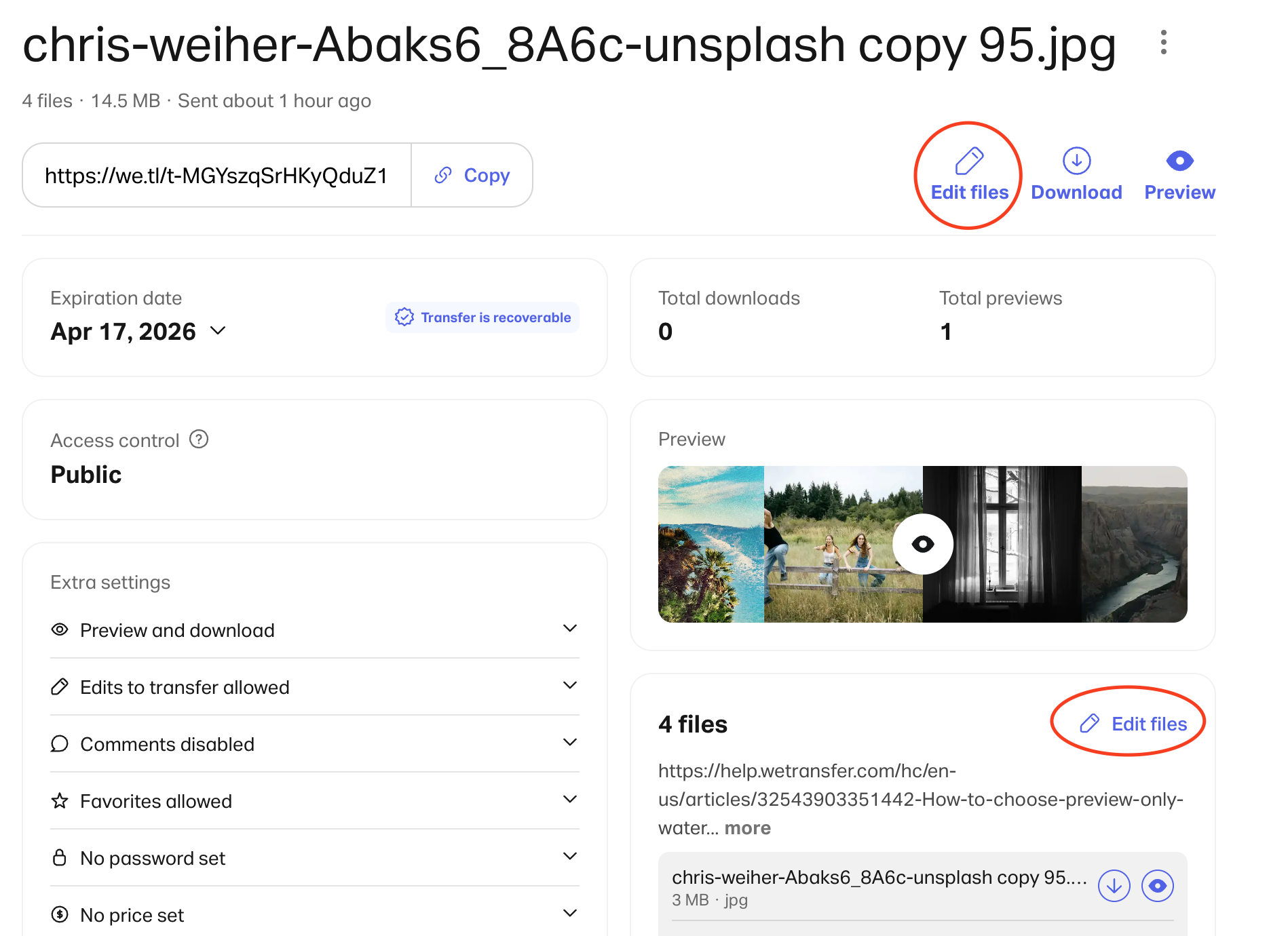 - Currently only the sender can edit a transfer's content — recipients cannot add or remove files.